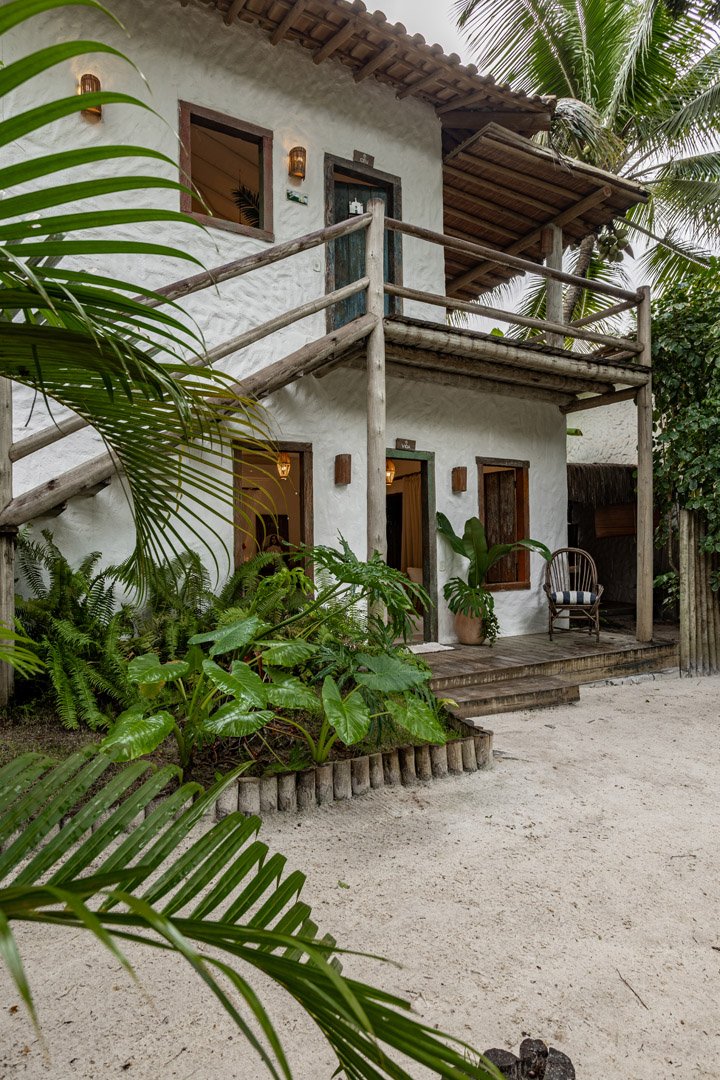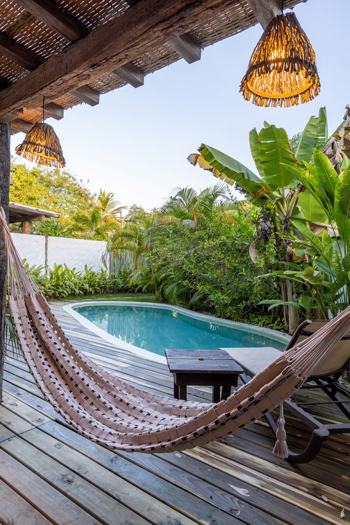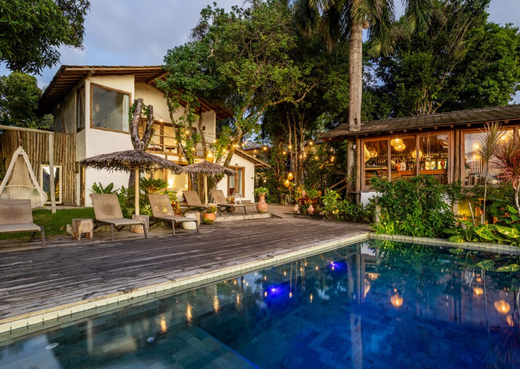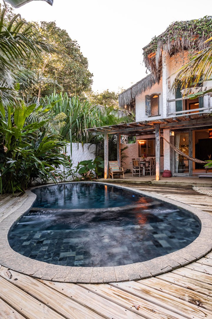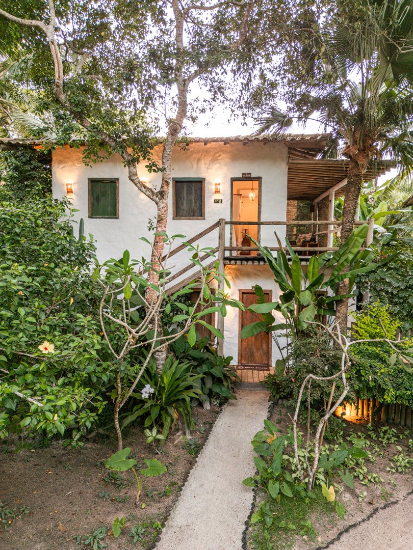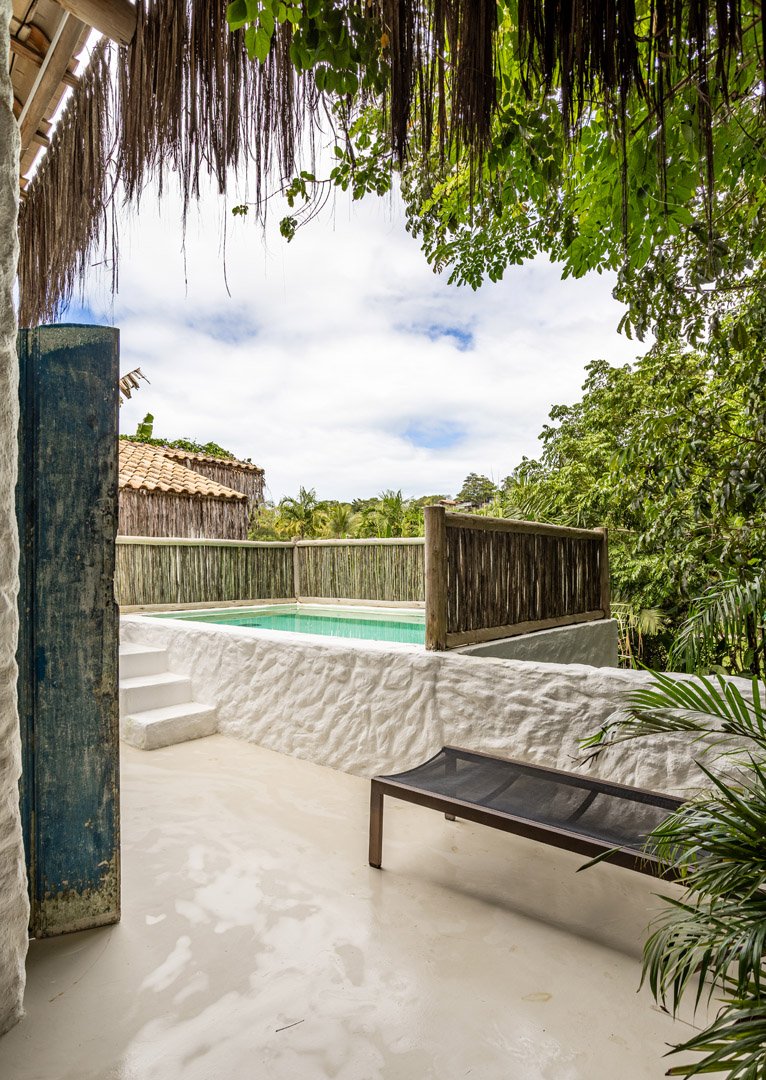 Com 100m², 2 suítes king-size amplas e piscina privativa cercada por jardim tropical. Arquitetura baiana que valoriza luminosidade e simplicidade elegante. Combina privacidade de casa com serviços completos de hotel boutique em Trancoso.