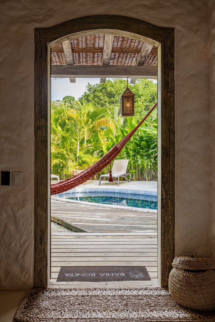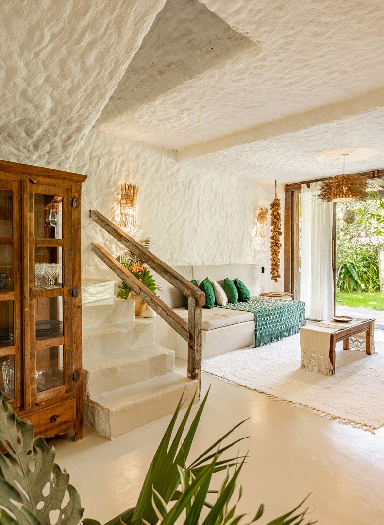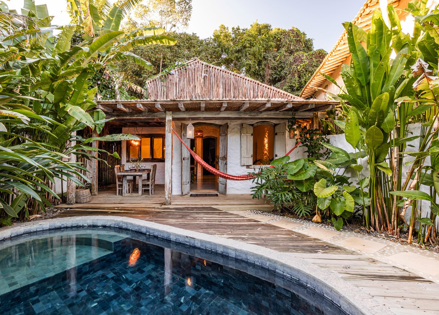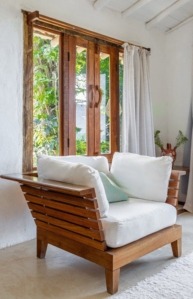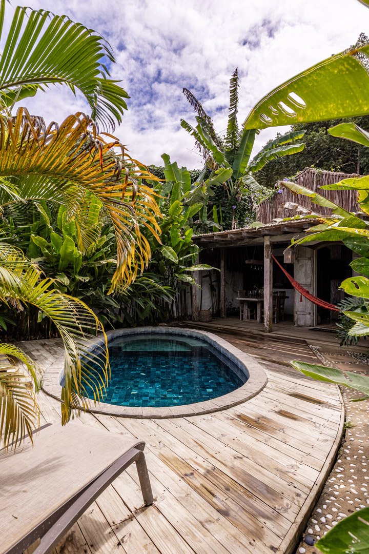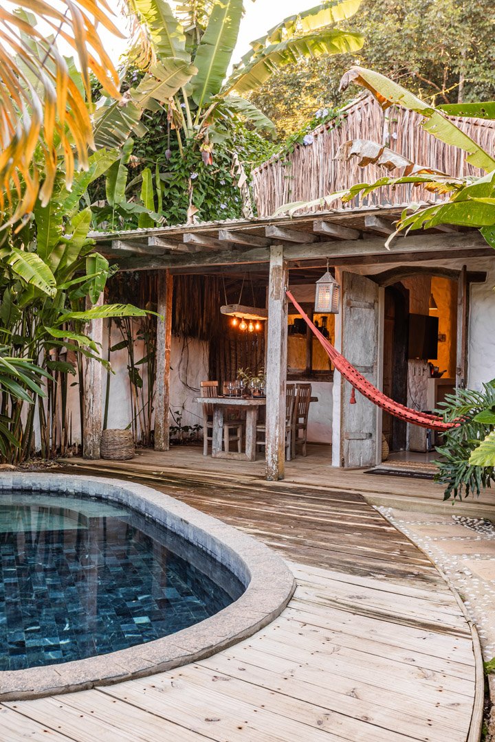 Com 100m², 2 suítes king-size amplas e piscina privativa cercada por jardim tropical. Arquitetura baiana que valoriza luminosidade e simplicidade elegante. Combina privacidade de casa com serviços completos de hotel boutique em Trancoso.