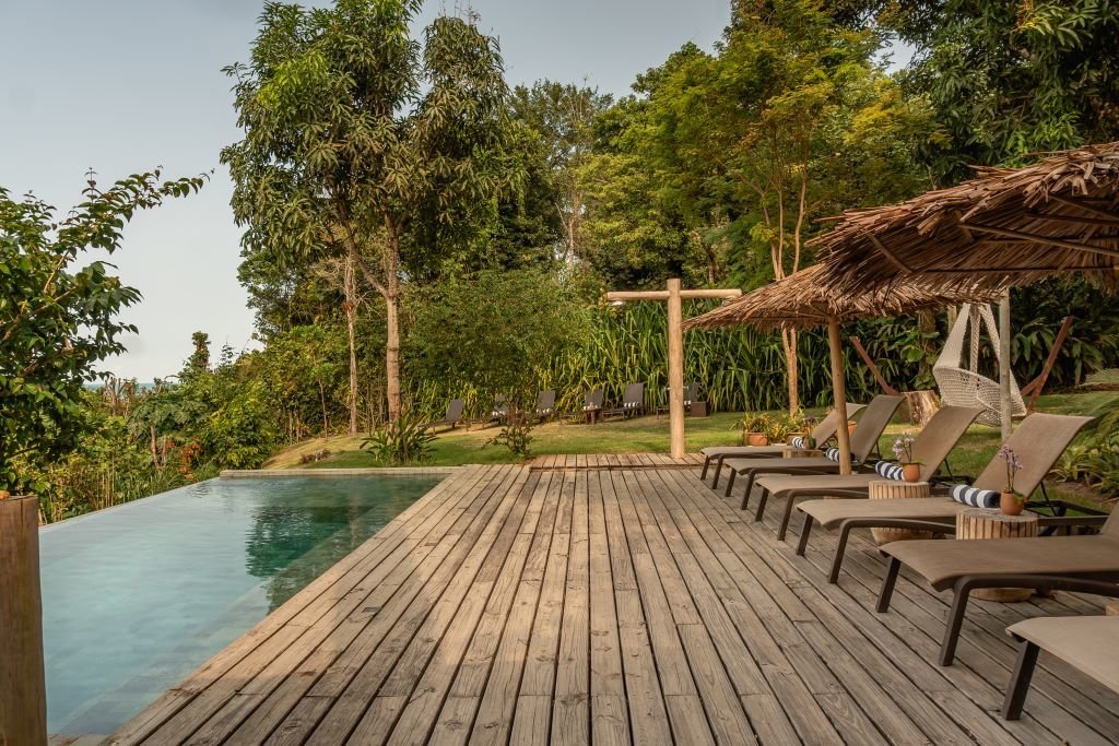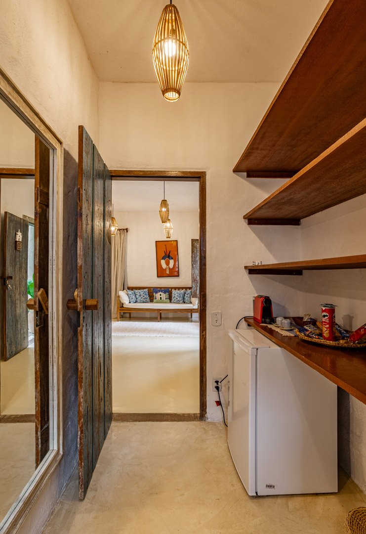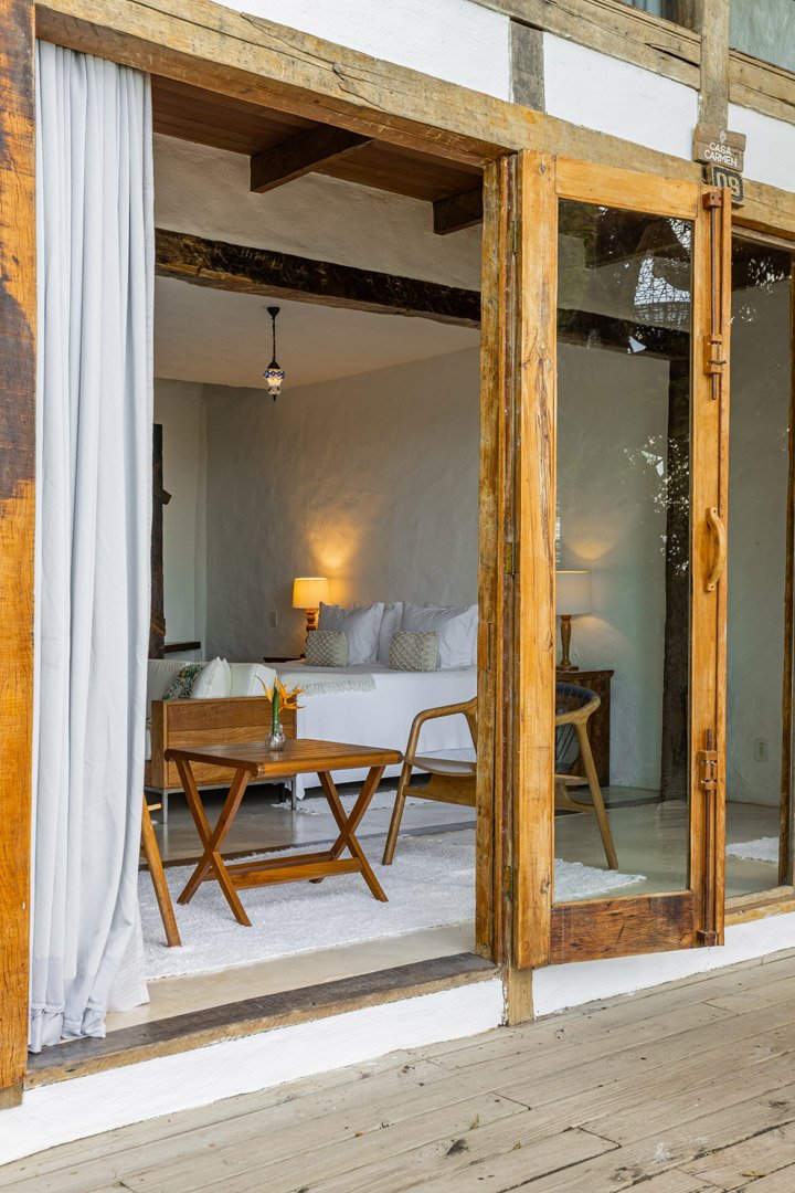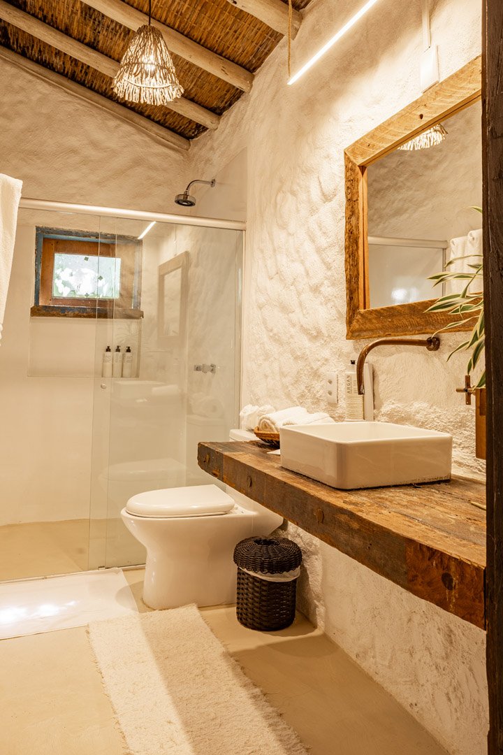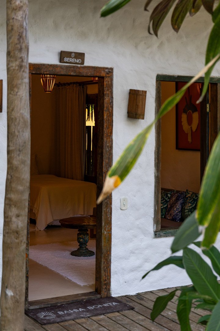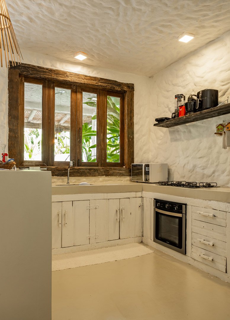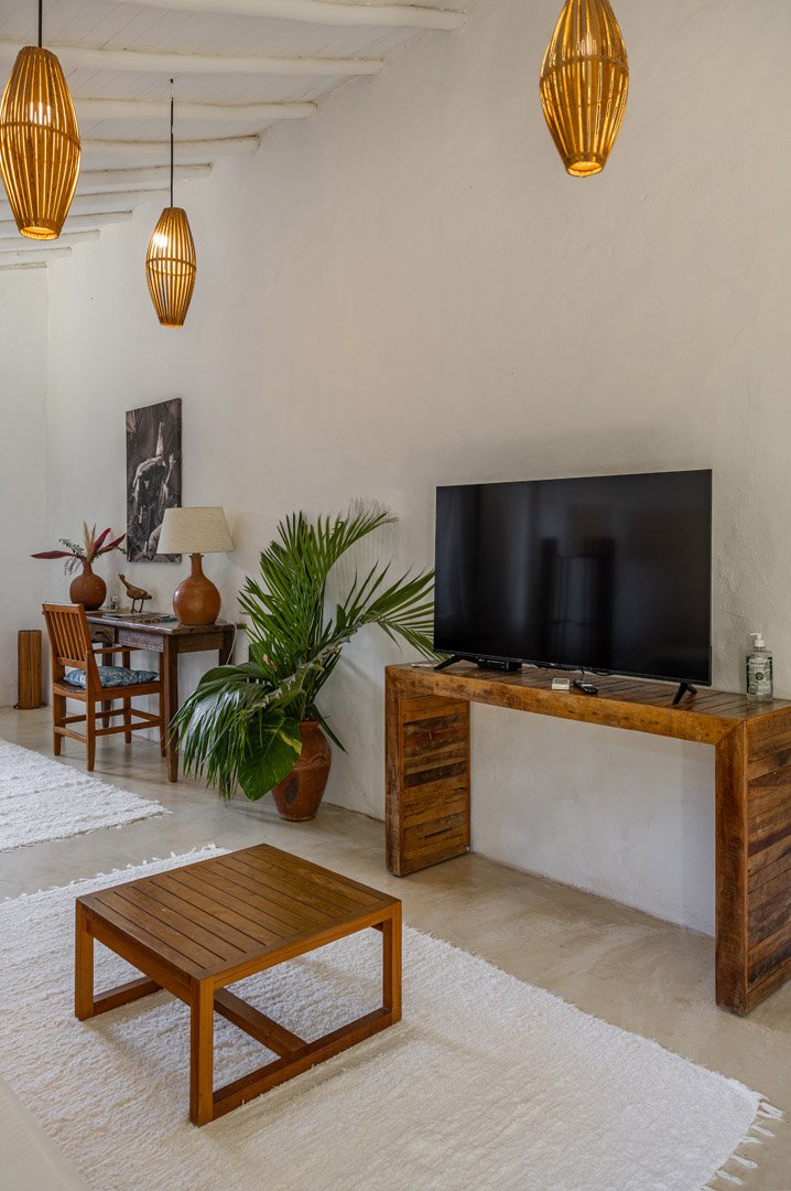 Com 100m², 2 suítes king-size amplas e piscina privativa cercada por jardim tropical. Arquitetura baiana que valoriza luminosidade e simplicidade elegante. Combina privacidade de casa com serviços completos de hotel boutique em Trancoso.