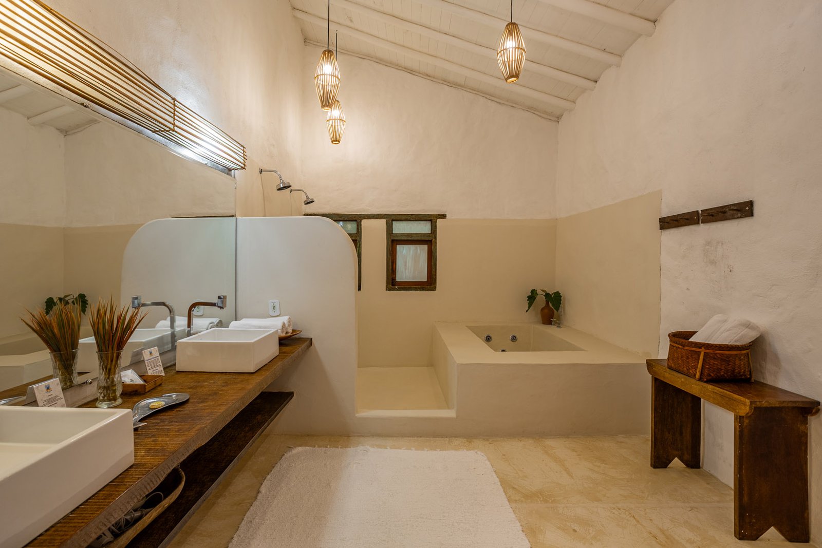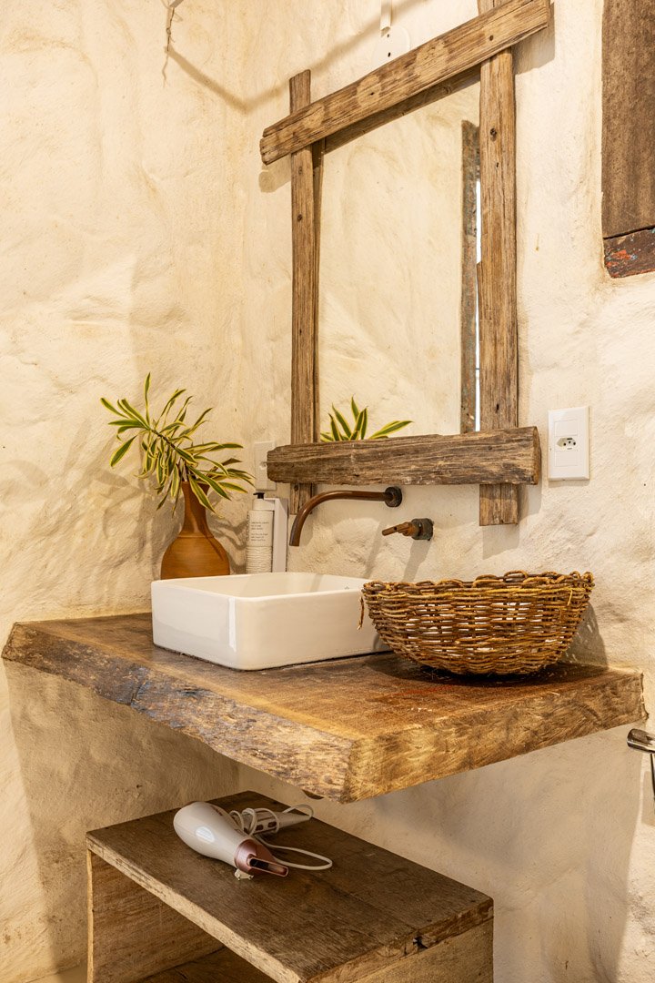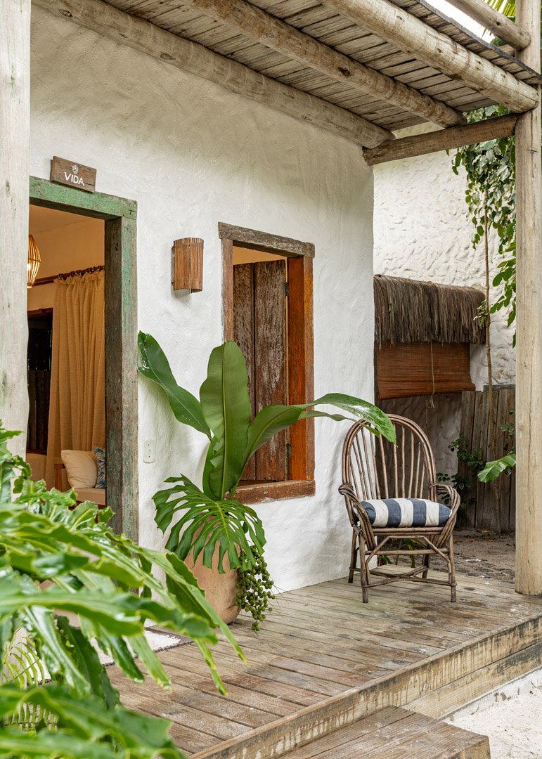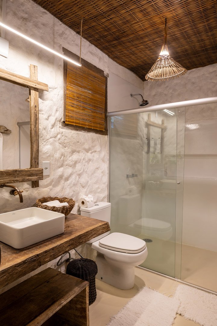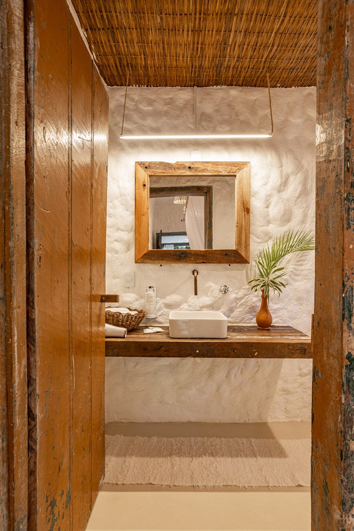 Com 100m², 2 suítes king-size amplas e piscina privativa cercada por jardim tropical. Arquitetura baiana que valoriza luminosidade e simplicidade elegante. Combina privacidade de casa com serviços completos de hotel boutique em Trancoso.