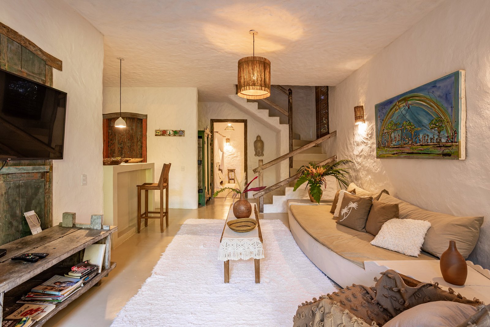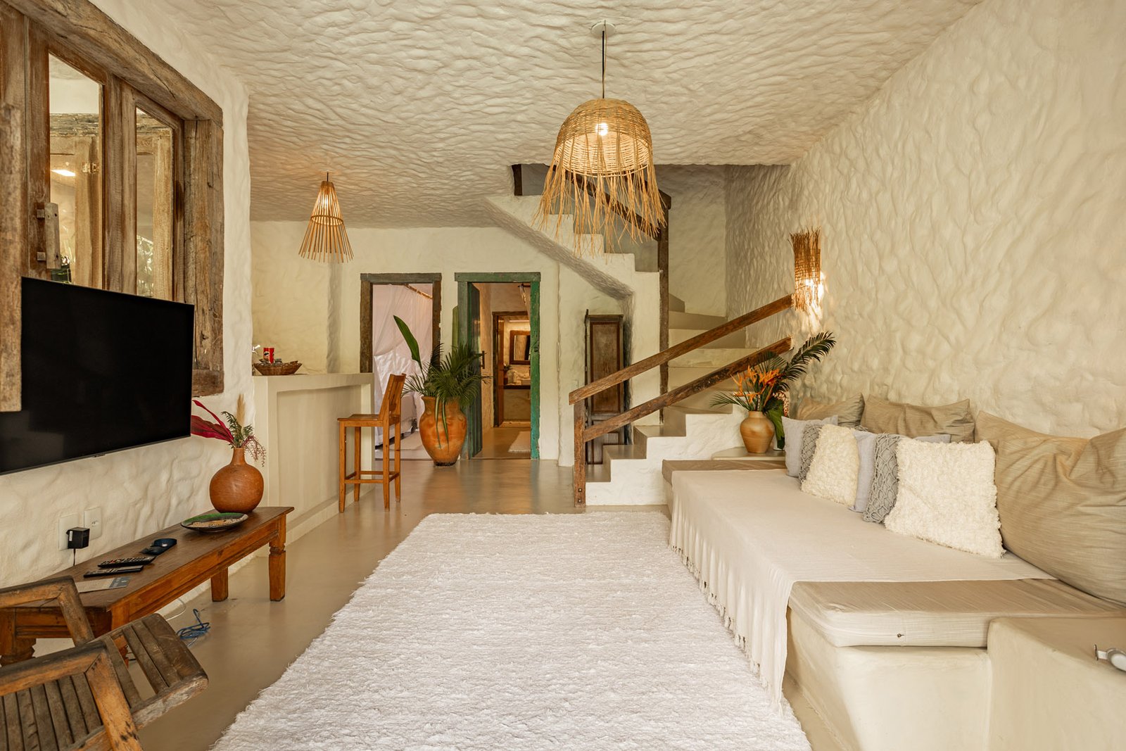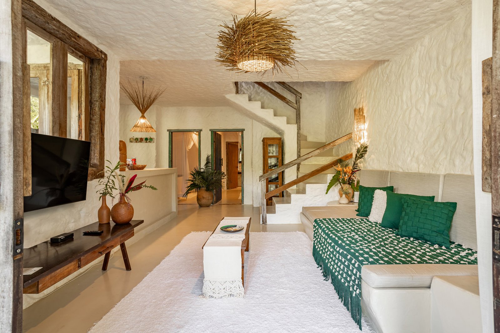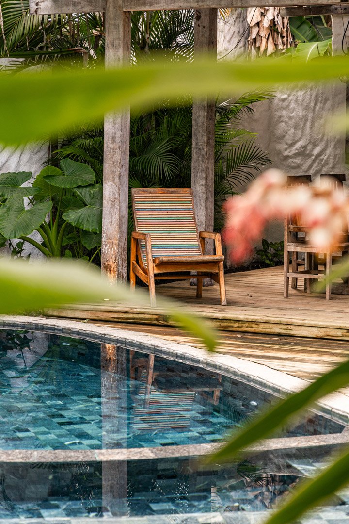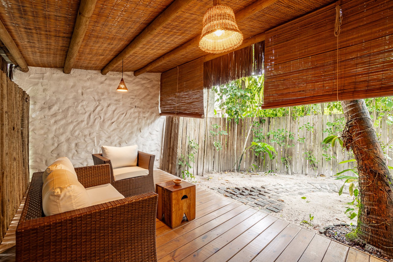 Com 100m², 2 suítes king-size amplas e piscina privativa cercada por jardim tropical. Arquitetura baiana que valoriza luminosidade e simplicidade elegante. Combina privacidade de casa com serviços completos de hotel boutique em Trancoso.