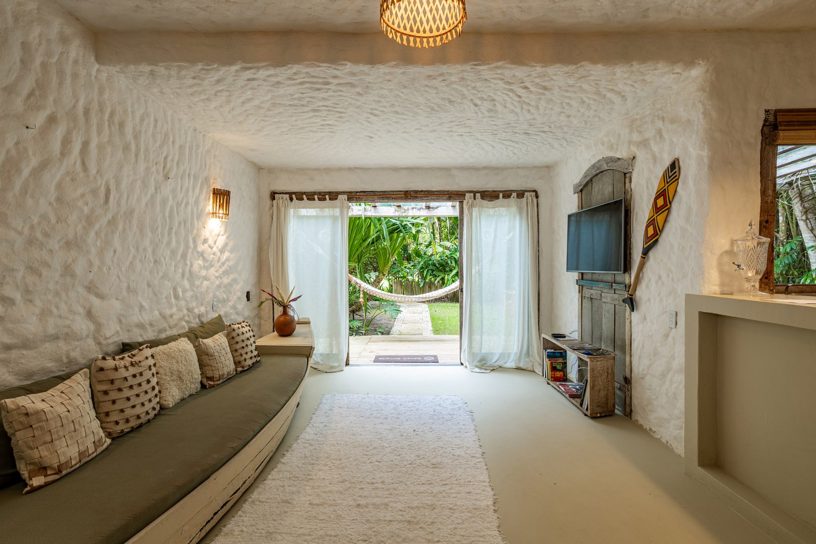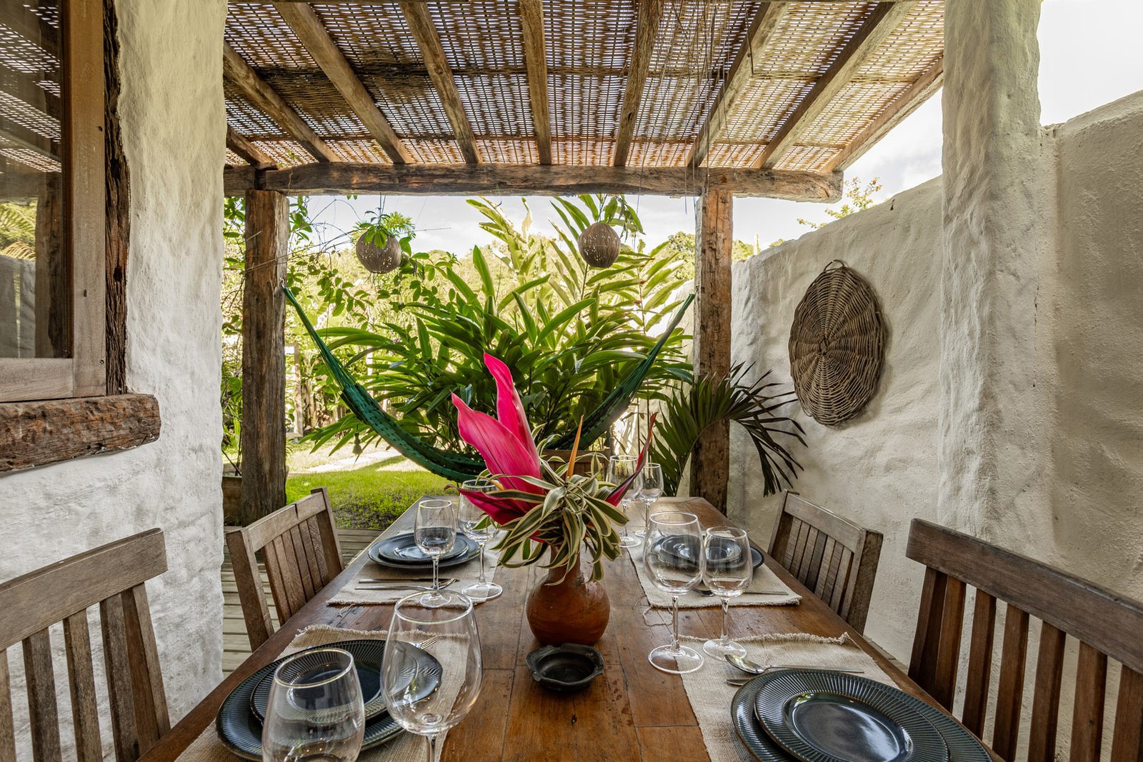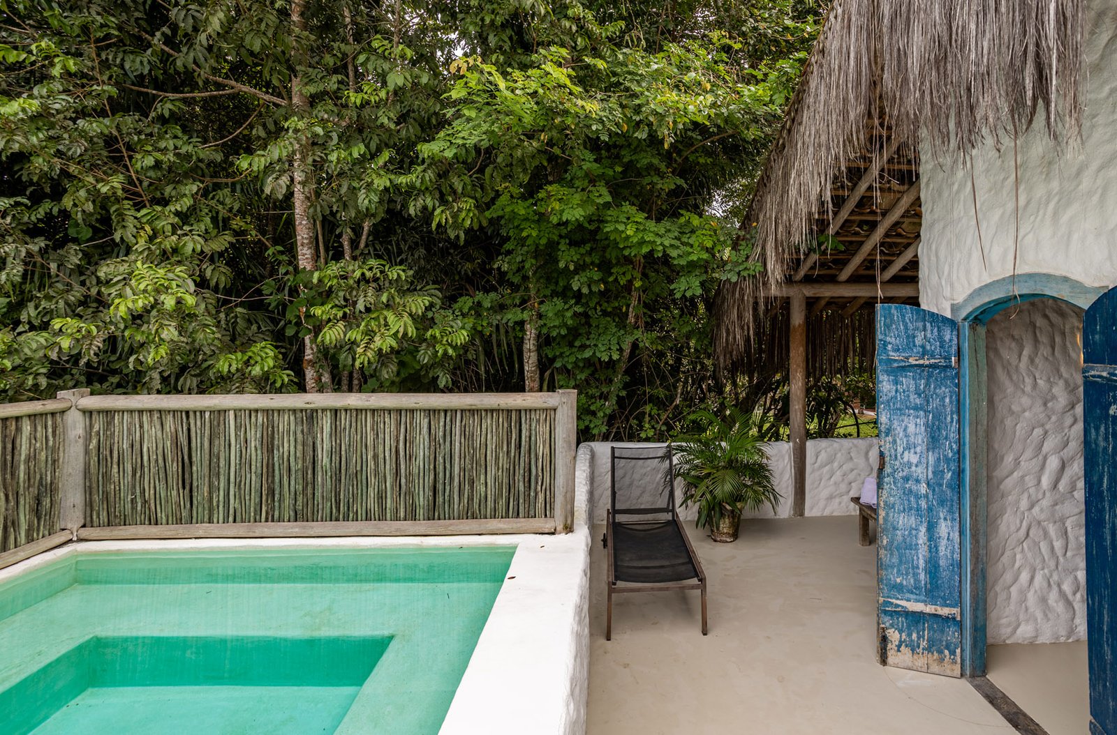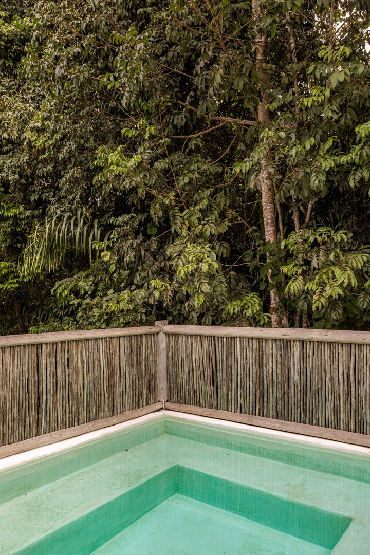 Com 100m², 3 suítes king-size e mosquiteiros dossel, piscina privativa cercada por jardim tropical. Arquitetura baiana com espaços amplos e integrados à natureza. Serviços completos de hotel boutique para até 6 pessoas em Trancoso.