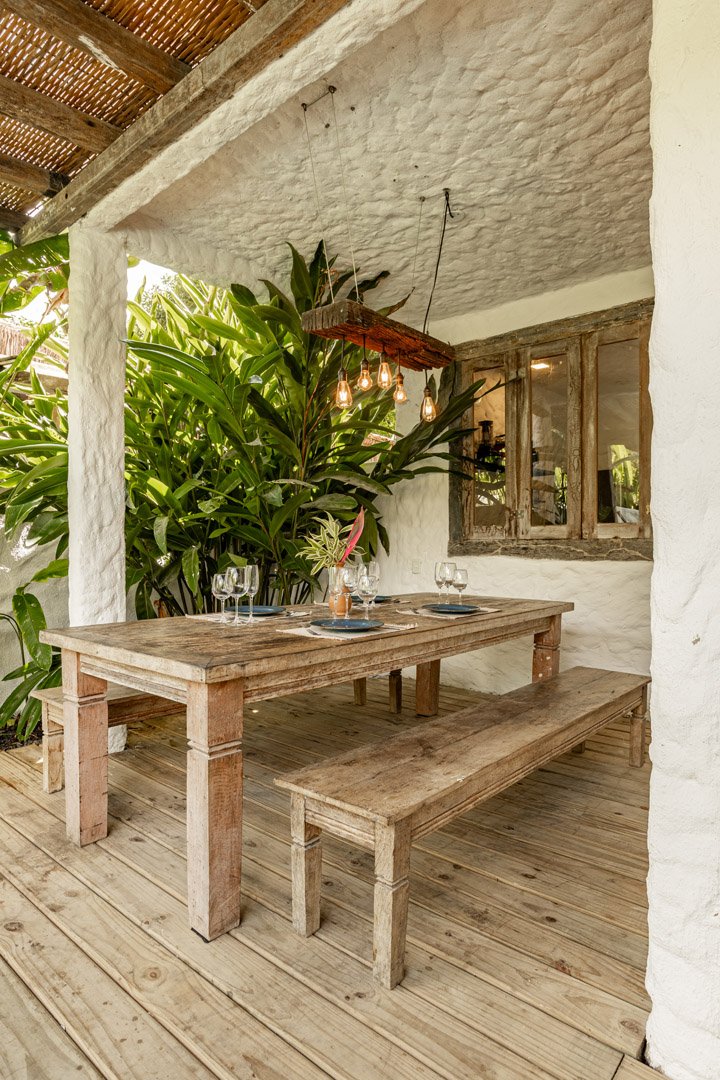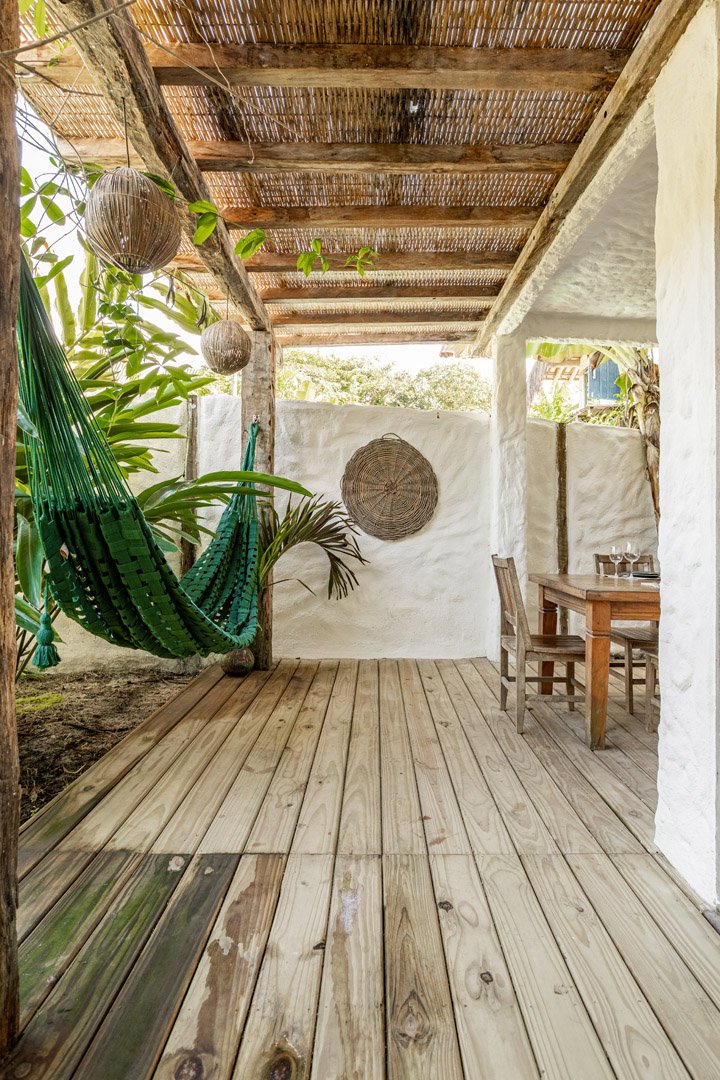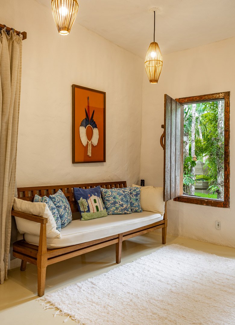 Com 100m² com 3 suítes king-size e mosquiteiros dossel, piscina privativa cercada por jardim tropical. Arquitetura baiana com espaços amplos e integrados à natureza. Serviços completos de hotel boutique para até 6 pessoas em Trancoso.