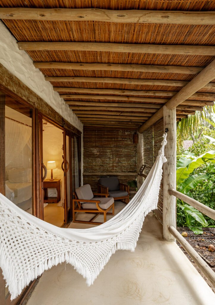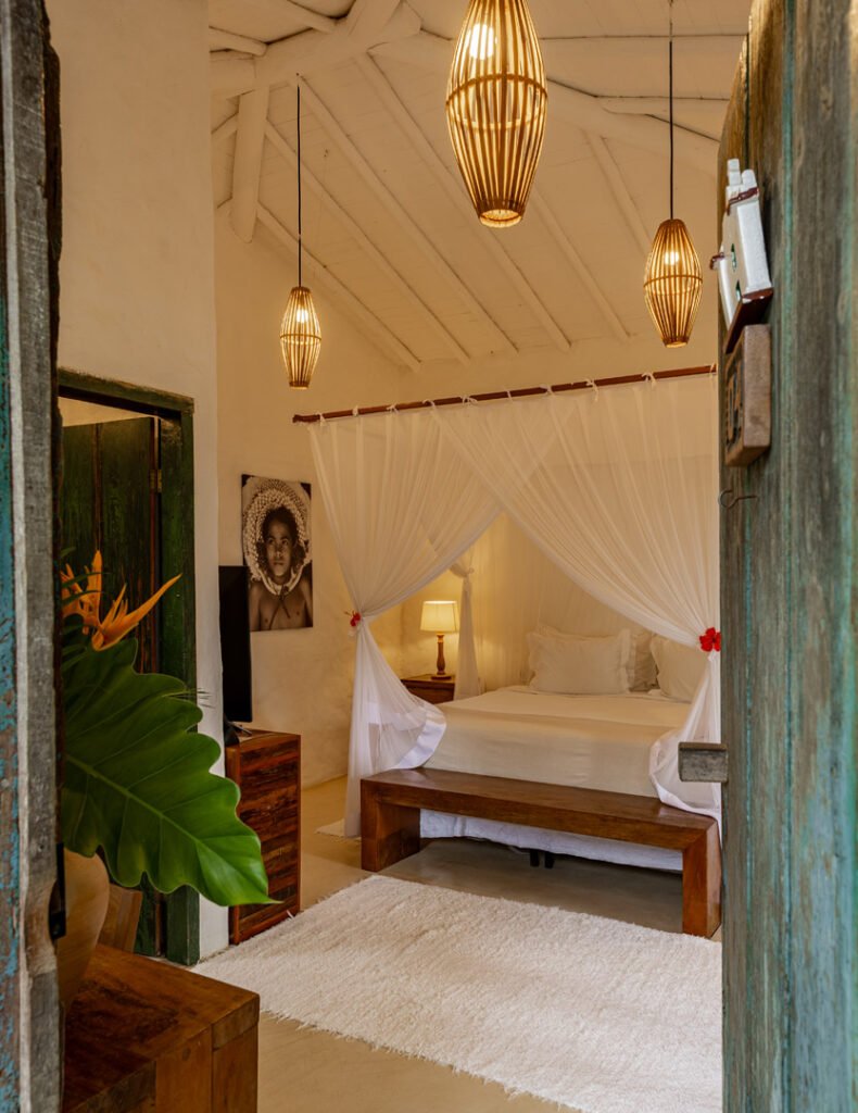 A Suíte Luxo Superior oferece a privacidade que você procura, sem o isolamento de uma vila. Você está no térreo do Bahia Bonita Boutique Hotel — com toda a estrutura à disposição e o jardim tropical emoldurando seus 60m² de conforto.